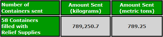 In addition, Hidaya Foundation has shipped 58 (40 ft.)