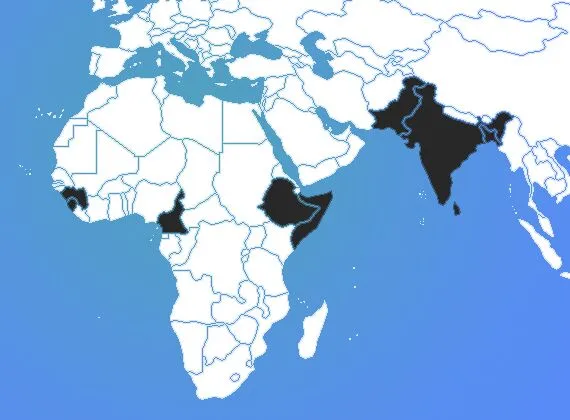 Asia: Pakistan, India, Bangladesh, Sri Lanka, Indonesia