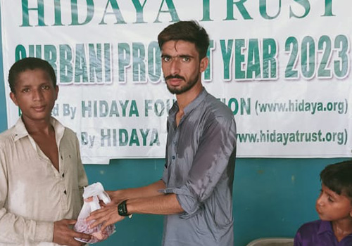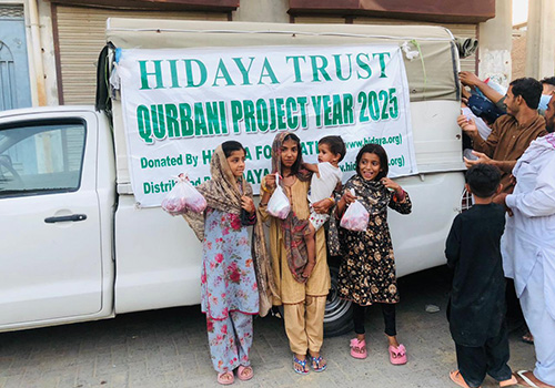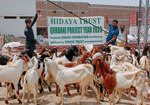 With the Blessings of Allah, this year, Hidaya Foundation arranged 5,563 shares of Qurbani on behalf of our donors (4,627 ox/buffalo shares or 661 ox/buffalo, and 936 goats/sheep). Additionally we arranged for 65 ox/buffalo to be sacrificed as Sadaqah (455 shares) so that more poor may benefit during Eid celebrations, especially those affected by floods in Pakistan.