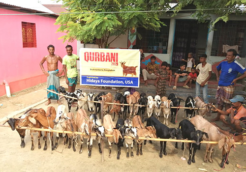 With the Blessings of Allah, this year, Hidaya Foundation arranged 5,959 shares of Qurbani/Udhiya on behalf of our donors (4,529 ox/buffalo shares or 647 ox/buffalo, and 1,430 goats/sheep).