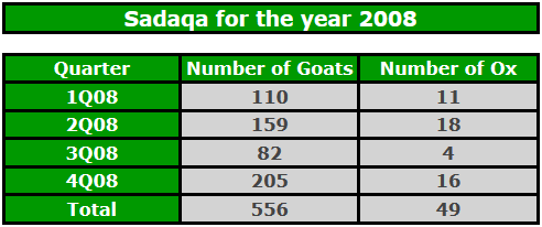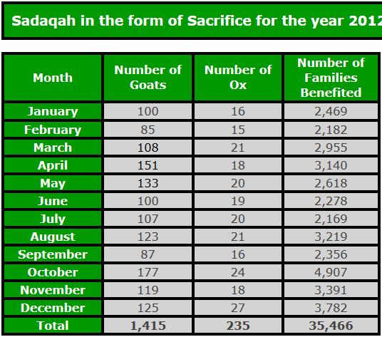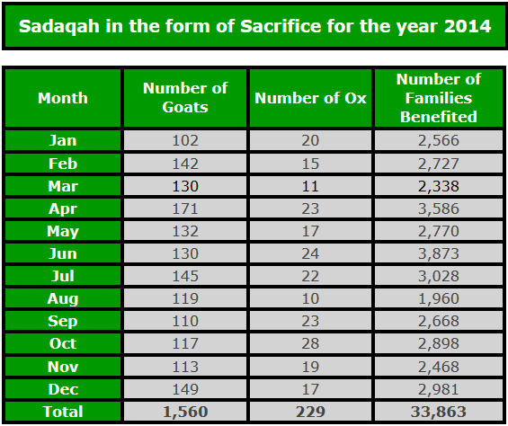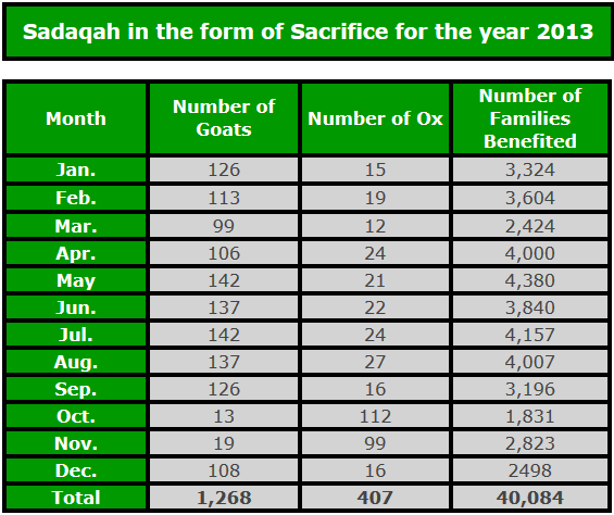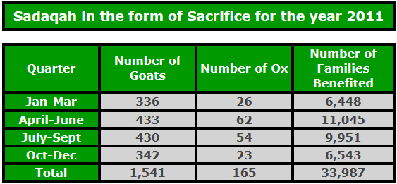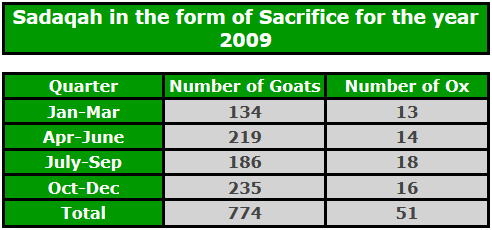 • 1,253 Goats/Sheep were sacrificed and distributed among the poor at the request of donors