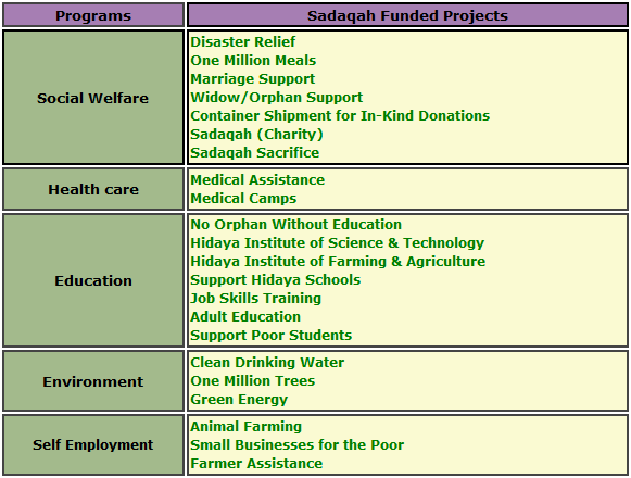 Hidaya Foundation distributes Sadaqah funds for the following projects, in addition to cash distribution. Kindly visit the following links for further project details: